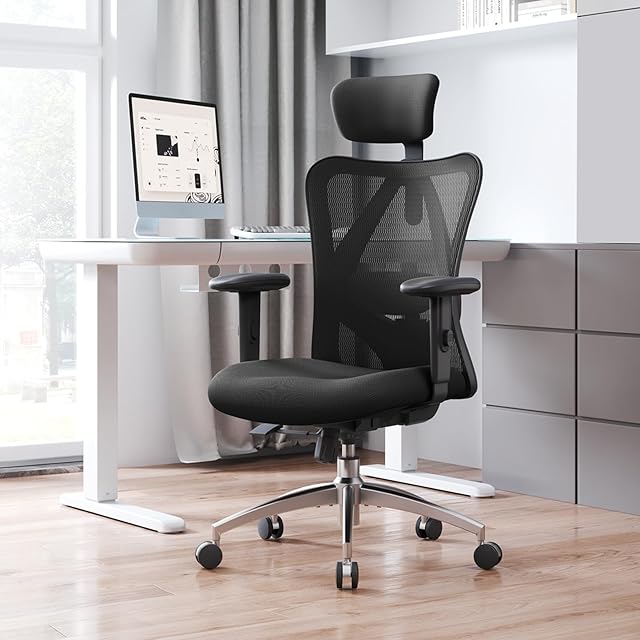 SIHOO M18 オフィスチェア デスクチェア 人間工学 ハイバック パソコンチェア S字立体背もたれ テレワーク 疲れない椅子 可動式アームレスト メッシュチェア (ブラック)