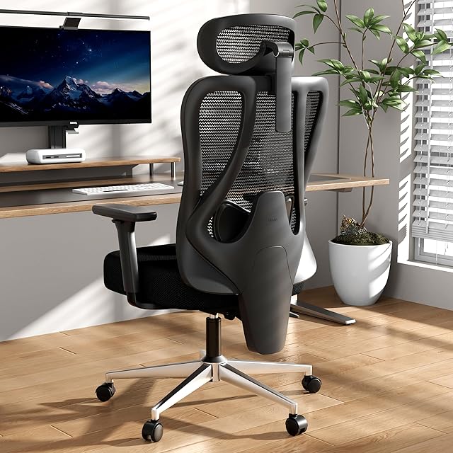 HBADA P3オフィスチェア デスクチェア 椅子 3Dアームレスト 3Dヘッドレスト 腰痛 ランバーサポート ハイバック メッシュ 約145度リクライニング フットレスト付き 通気性 360度回転 座面昇降 鋼製ベース 静音PUキャスター