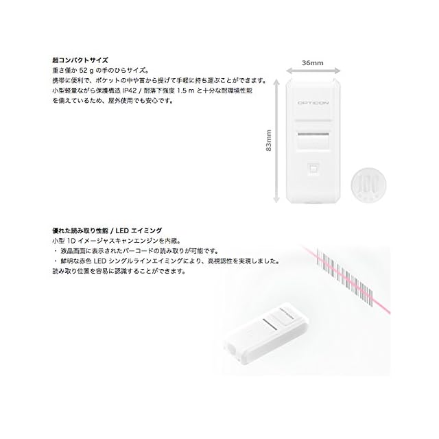 株 オプトエレクトロニクス OPTICON 1次元CCDバーコードスキャナBluetooth搭載コンパクトタイプ OPN-4000I-WHT