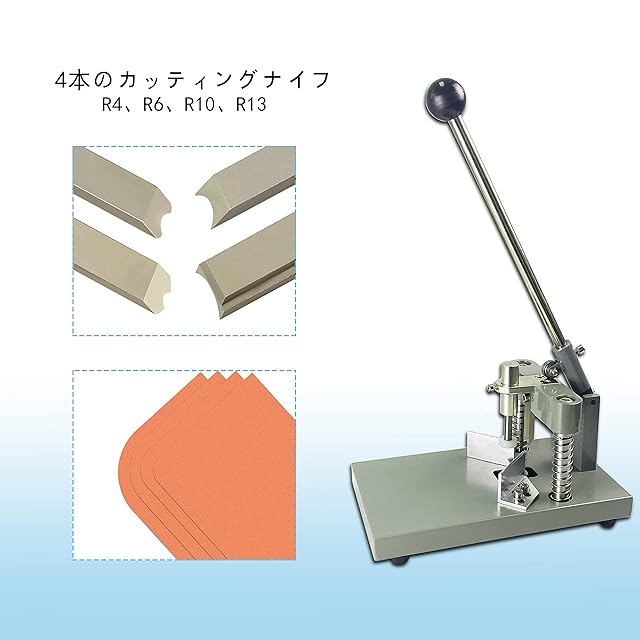 【4ダイ】4つのカッティングダイがこのコーナーカッターに付属します:R4(5/32 ")、R6(1/4")、R10(3/8 ")およびR13(1/2")。 「R」はフィレット半径を意味します。最大切削厚さ:30mm / 1.18 "。