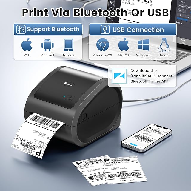 便利な接続:ブルートゥース接続により、印刷がより簡単になります! Labelife "アプリでiOSやアンドロイドデバイスにワイヤレスで印刷できます。 また、USB経由でPC、Windows、Mac、その他のデバイスに接続することもできます。PCからの印刷には、"labelife.net/#/d520 "からドライバーをダウンロードする必要があります。)