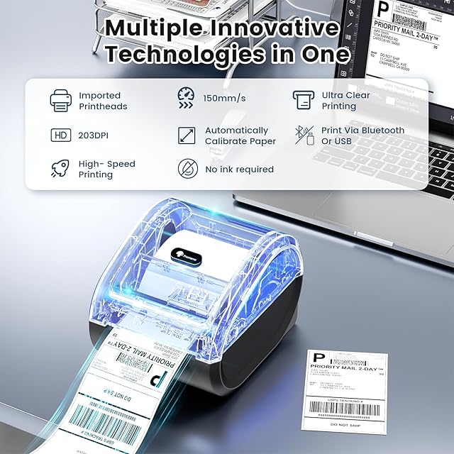 マルチプラットフォーム対応 - Phomemo 203dpi 宛名ラベルプリンターは、鮮明な出荷ラベルを印刷します。高速印刷(72ラベル/分)により、生産性が劇的に向上します。ファンフォールドラベルやローラーラベルなど、幅1~4.6インチのラベルに対応し、eBay、Shopify、Etsyなど、主要な販売・出荷プラットフォームでのラベル印刷に広く使用されています。