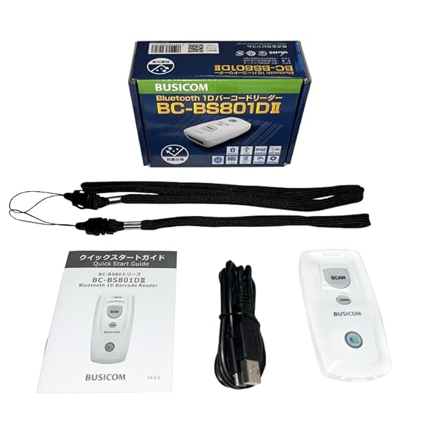 ビジコム 一次元バーコード対応 ワイヤレスバーコードリーダー BC-BS801D-V2-CW (Bluetooth・USB・メモリ機能付・抗菌仕様・日本語マニュアル付)