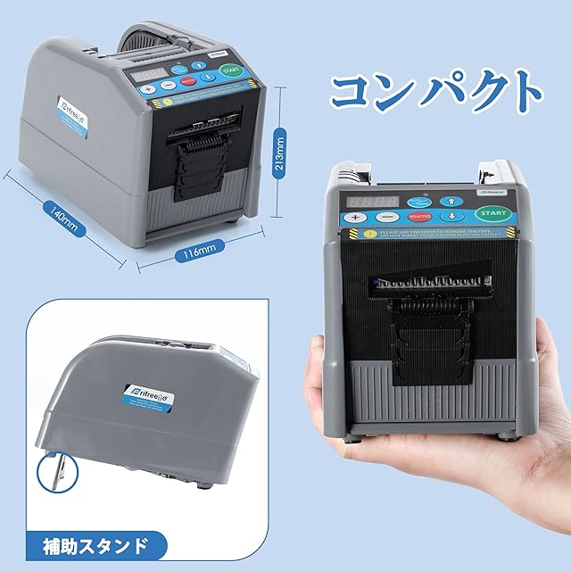 【操作簡単】電子テープカッターの使用は非常に簡単です。機械に適切なテープのロールを付けて、必要なテープ長さと操作モード(自動/手動)を設定し、startボタンを押すだけで、自動送り・自動カットできます。パッケージには日本語取扱説明書も添付されています。使用中に何か疑問でもありましたら、いつでもお問い合わせください