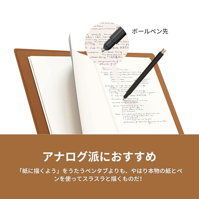 【リアルペーパーと高性能ペン】❶交換可能なメモ用紙:A5サイズ、50ページ。本物の紙に書くのでコツがいらない。ペンタブに慣れないアナログ派におすすめ。一般的なメモ用紙でも機能したので、付属ノートの残りページ数を気にする必要がない。❷高性能ペン:充電不要。PenTech 3.0搭載:より安定した性能。追随性に優れている。筆圧感知:8192段階。傾き検知:±60°。読取解像度:5080LPI。2種類のペン先:ボールペン先(ノートモード用)とプラスチック製ペン先(ペンタブモード用)