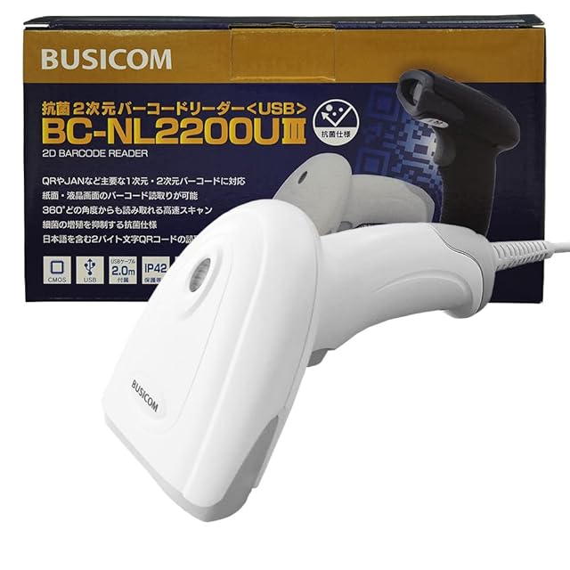 ビジコム 抗菌仕様 QR 2次元バーコードリーダー (USB Type-A・白) BC-NL2200U3-W