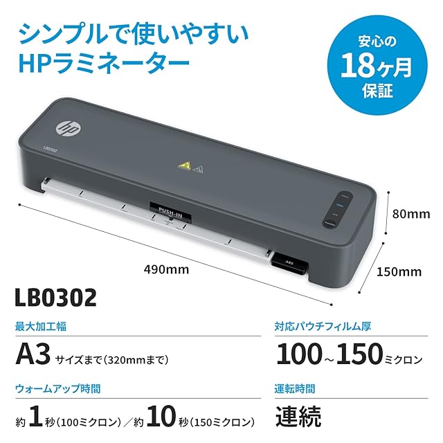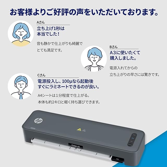 HP パウチラミネーター 本体 (名刺サイズ / A4 / A3 対応) ウォームアップ約1秒 4本ローラー 簡単操作 (軽量/コンパクト) 100-150ミクロンフィルム対応 (業務用/家庭用)
