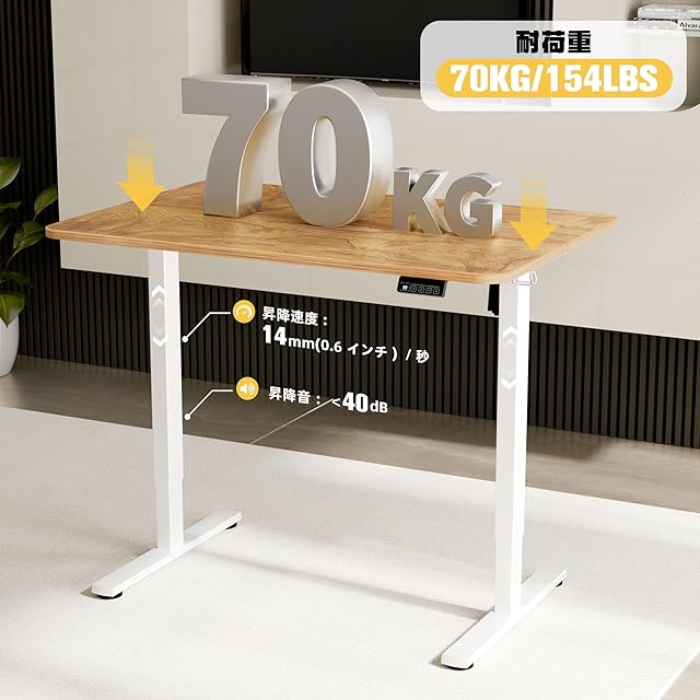 【頑丈な構造】高さ調節可能な昇降デスクフレームは頑丈なスチール製、耐荷重は70KG、 移動速度は毎秒14mm で、デスクを最も高いところまで上昇させても安定しています。ソフトスタート/ストップ機能により、デスクをスムーズかつ静かに動かすことができます。(<50dB)スマートハンドセットには、LEDディスプレイ、座る/立つ位置用の2つのメモリプリセット、およびチャイルドロックがあります。