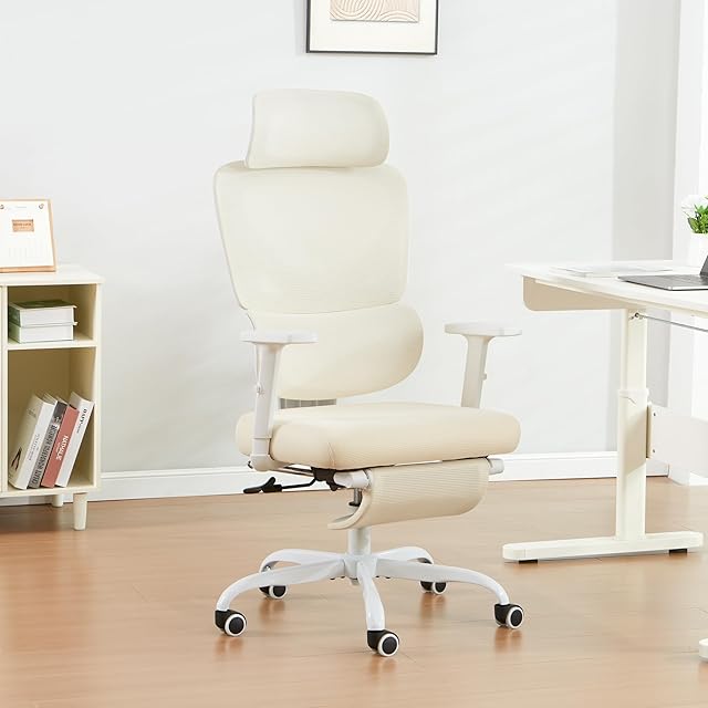 UPHYB オフィスチェア デスクチェア 椅子 テレワーク 疲れない 腰が痛くならない 約145度リクライニング 人間工学 メッシュチェア フットレスト付き 4Dランバーサポート 3Dヘッドレスト 3Dアームレスト パソコンチェア 昇降 静音キャスター ハイバック あぐら座椅子 白 ホワイト
