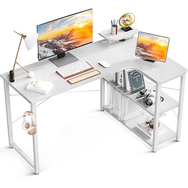 AODK パソコンデスク l字デスク 幅130cm 天板面取り加工 棚付き 収納 ゲーミングデスク pcデスク デスク 机 コーナーデスク L字型 デスク 机 pcデスク オフィスデスク 桌子 computer desk 在宅勤務 組立簡単 ホワイト 右棚