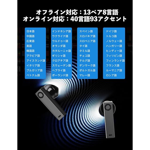 Timekettle X1 翻訳イヤホン 音声翻訳機 二台に通話翻訳 同時通訳イヤホン 通話と動画翻訳 AI通訳機 オフライン対応 通信料金なし 133言語対応 メーカー保障2年 ビジネス オンライン会議 リモート音声 セミナー 海外旅行 タイムケトル アプリ接続なし