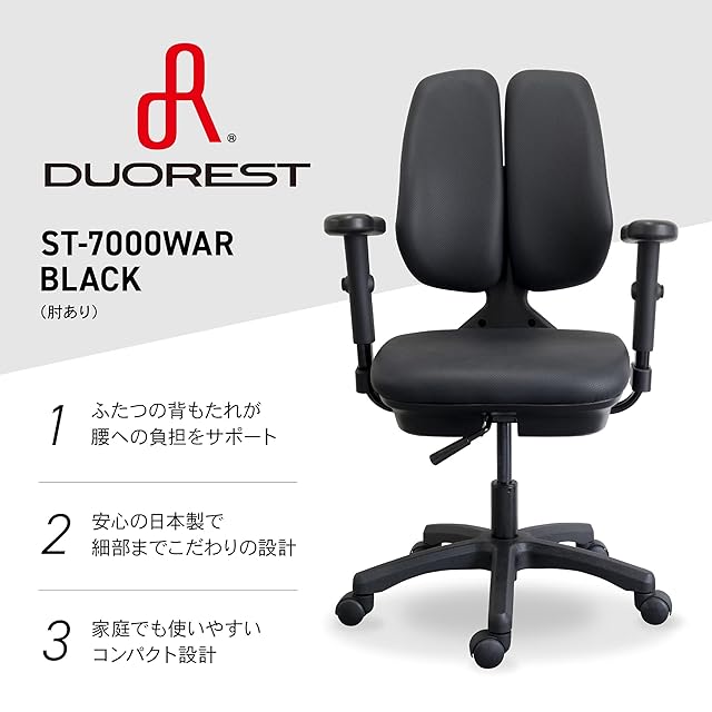 DUOREST(デュオレスト) 回転椅子 ST-7000WAR 肘あり (ブラック)