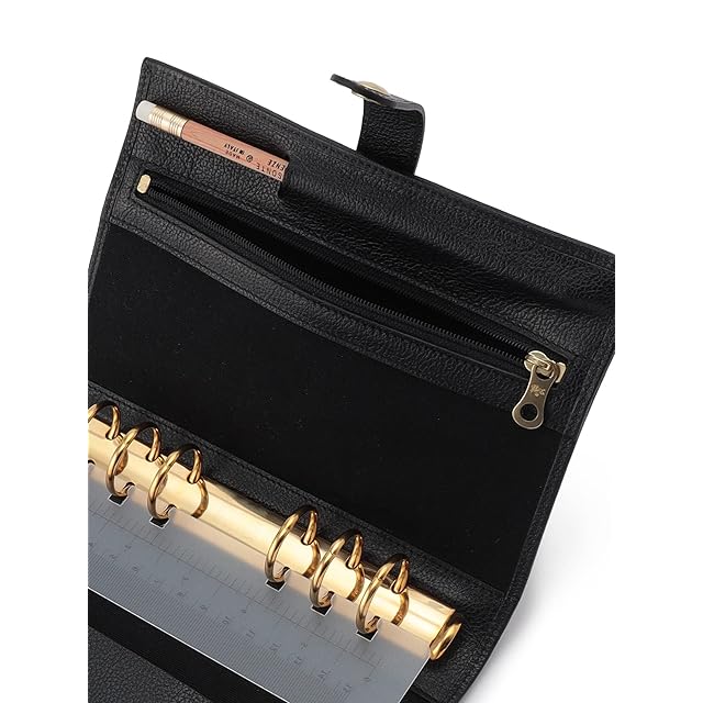 手帳用定規と鉛筆が付属した便利なシステム手帳。手に馴染むしなやかなレザーを採用しており、豊富なカラーバリエーションからお選びいただけます。スナップボタン開閉、内部にはファスナーポケット付き。※手帳の中身は付属しておりませんので、対応レフィルをご購入ください。※イル ビゾンテの革製品に付属している保存袋の仕様を変更いたします。予めご了承ください。※イル ビゾンテの革製品は、天然の革を使用している為、1点1点風合いや色味に違いが生じる可能性がございます。予めご了承ください。※採寸の詳細につきましては、サイズガイドをご覧下さい。