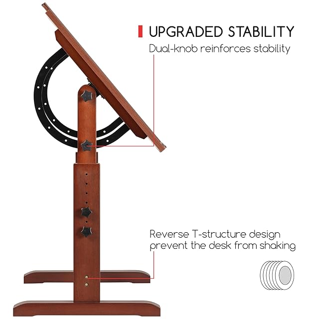 【ブナ木製採用&高品質】:ダークレッド色の製図テーブルは中実のケヤキの木で手作りされ、技術が優れており、破損や割れにくく、耐用年数が長い。H型フレーム構造はテーブルを安定して丈夫にし、厚くしたテーブルの脚の支持力が強く、荷重が高い。クリアな木目が机の質感を高め、ペンスタンドを内蔵することで絵の具の落下を防ぐことができます。