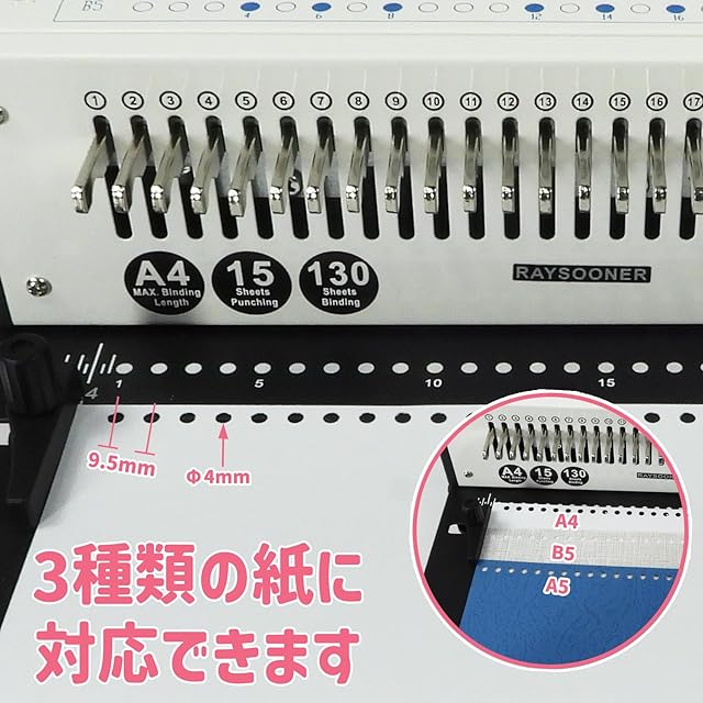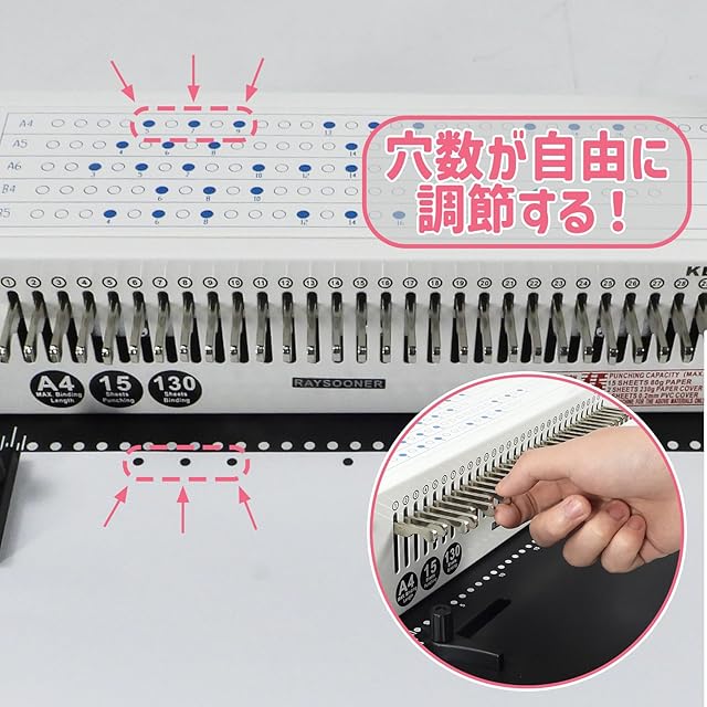 RAYSOONER KD-15 製本機 1~30穴まで調整可能 穴あけパンチ 丸穴 A4、A5、B5用紙対応 ピッチ調整 15枚パンチ可能 強力 省力 ルーズリーフ製本 学校、工場、家庭に最適