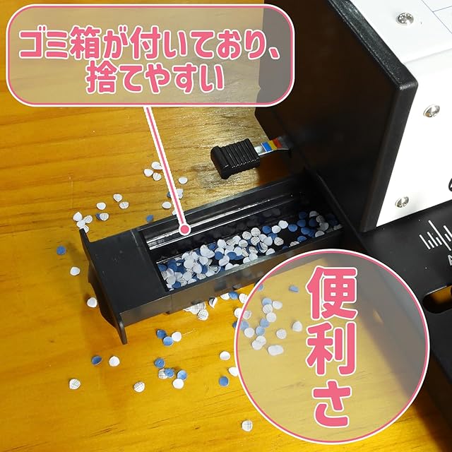 【機能】3mm、5mm、7mm、3種類のピッチ調整。機体には多くの製作参考がついている。マルチホールドリル、用紙サイズに基づいたノートを作成します。