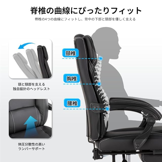 【優れた耐久性】このデスクチェアは超高耐荷重の金属(鋼)ベースを使用しており、静止耐荷重約1150KGの強度を持ち、どんな激しい動きにも対応可能です。社長椅子やワークチェアとしても優れた耐久性を誇ります。このデスクチェアは、ゲームやオフィスワークに最適な機能性と快適さを兼ね備えた一品です。在宅勤務やテレワークの質を向上させるためにもオススメいたします。