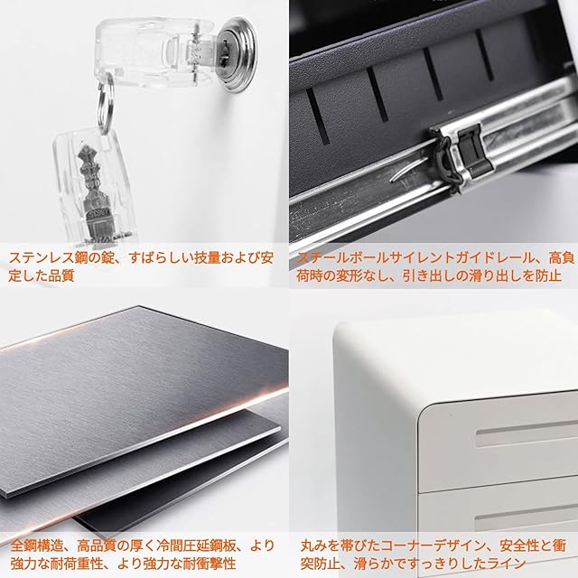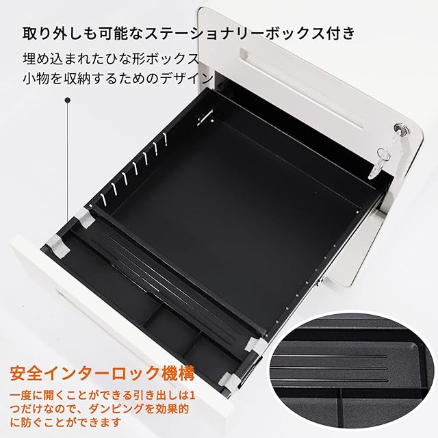 【鍵付き シリンダー錠】使いやすいし、簡単です。1つ施錠すれば引き出しがすべて閉まり