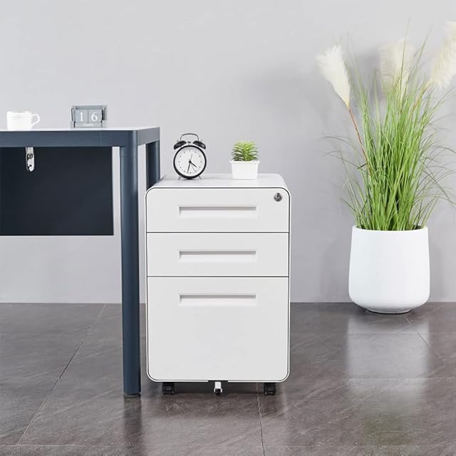 【法人様向け】 MTLES デスクワゴン サイドワゴン 鍵付き 3段 オフィスワゴン オフィス 引き出し 袖机 デスクサイド収納 キャスター付き おしゃれ 組立不要 完成品 すぐに使える 3段 引き出し サイドワゴン 大容量 A4対応 スチール製 ホワイト 幅40 奥行45 高さ60cm