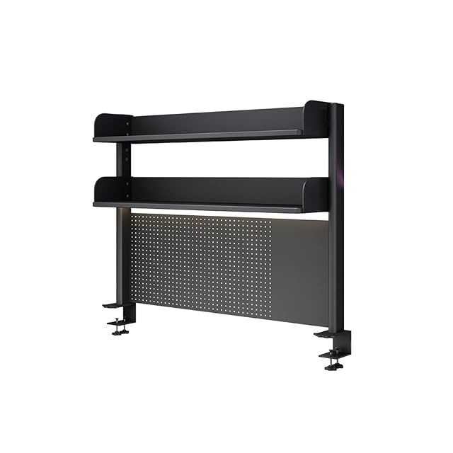 AOVOCO 机上ラック 本棚 有孔ボード デスクシェルフ スチールラック デスク上置き棚 ブックスタンド 卓上 簡単組立 ブラック 3段 幅60×高さ95