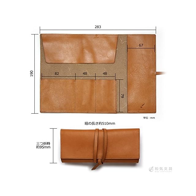 【サイズ・仕様】●広げた時の商品サイズ:約 横283×縦190mm●三つ折時の商品サイズ:約 横95×縦190mm●紐の長さ:約510mm●重量:約107g●パッケージサイズ:約 横237×縦125×高さ52mm●筆記具収容数:約8~10本(筆記具のサイズにより収容できる本数が少なくなる場合もございます)●素材:栃木レザー(揉み加工)●オリジナル化粧箱入り●日本製 MADE IN JAPAN