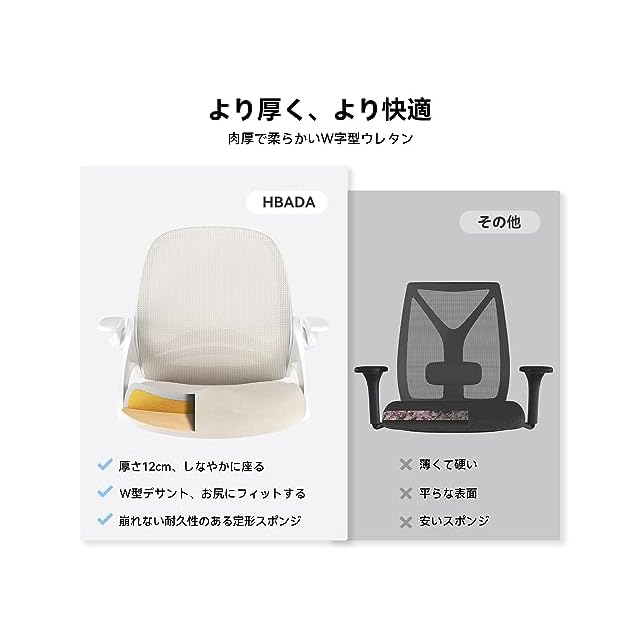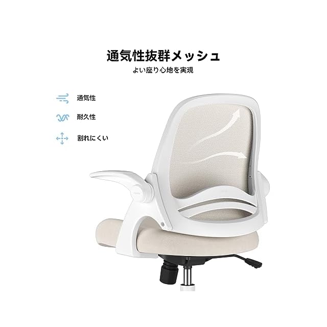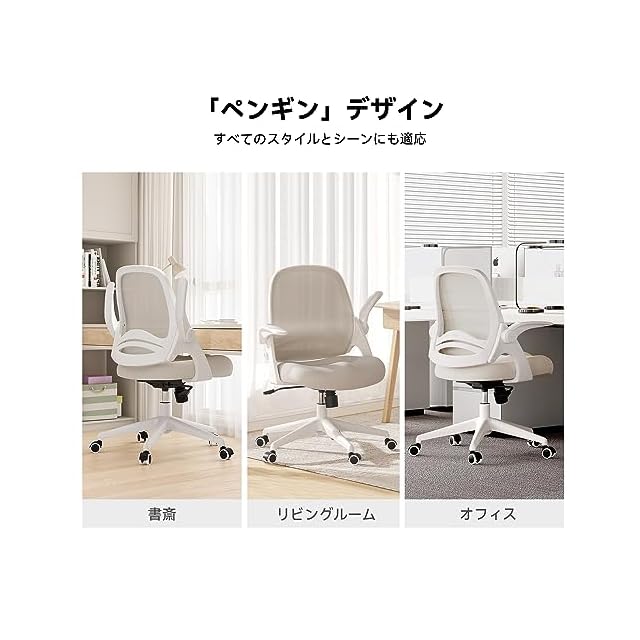Hbada 椅子 オフィス デスクチェア イス パソコン 跳ね上げ式アームレスト コンパクト 約105度ロッキング pc 事務椅子 360度回転 座面昇降 強化ナイロン樹脂ベース メッシュ テレワーク 在宅ワーク J323 グレー