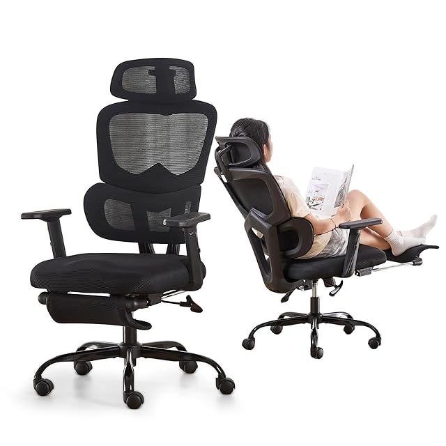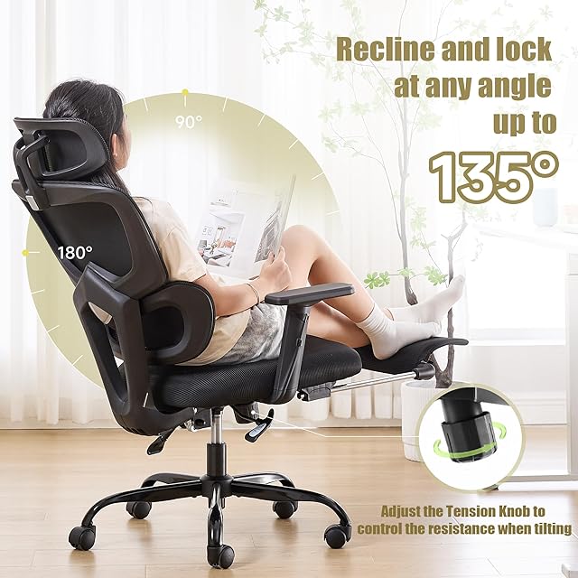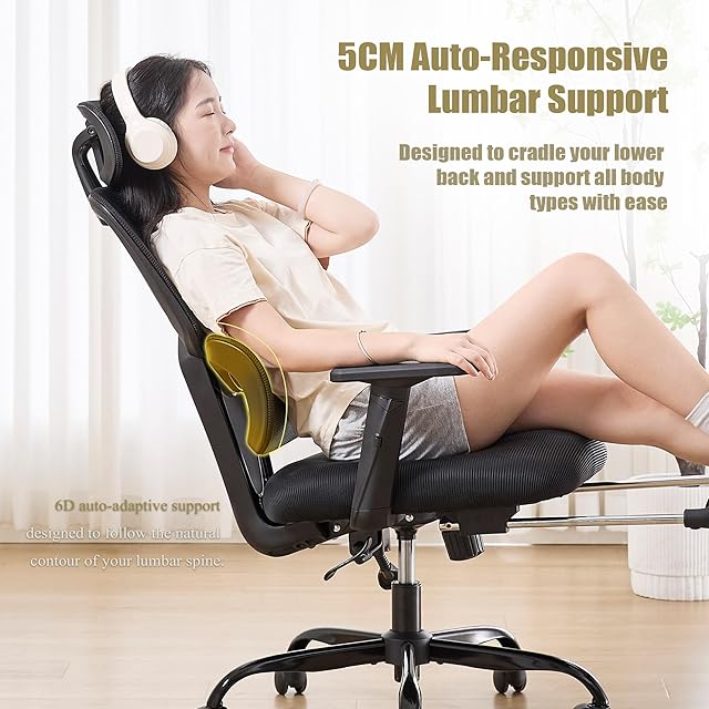 KITHOME オフィスチェア 椅子 デスクチェア テレワーク 疲れない 腰が痛くならない 約140度リクライニング 人間工学 メッシュチェア 4Dランバーサポート 3Dヘッドレスト 2Dアームレスト パソコンチェア pcチェア 静音 あぐら 53cm幅広い座面 黒 ブラック