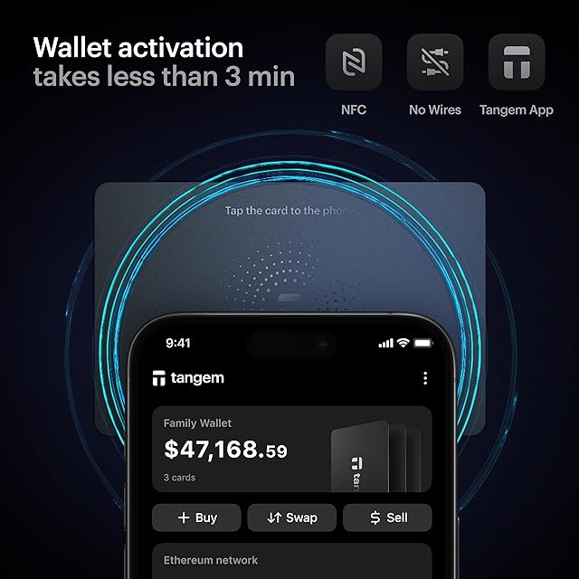 Tangemウォレット 3枚セット - 安全な暗号資産ウォレット - ビットコイン、イーサリアム、NFTなどをコールドストレージで保管 - 100%オフラインのハードウェアウォレット - カードで暗号資産を保護。ブラック、コンパクトサイズ