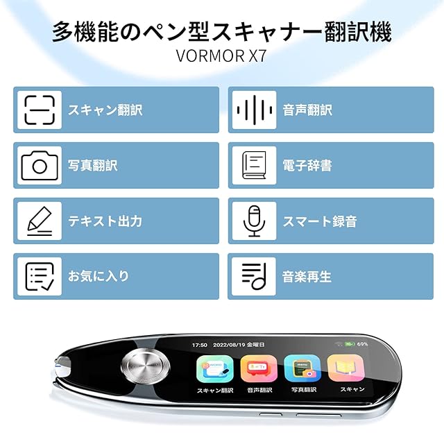公式VORMOR X7[ボルモル X7]ペン型スキャナー辞書 翻訳機 電子辞書 112言語対応 オンライン+オフライン式 テキスト翻訳 音声翻訳 写真翻訳 録音翻訳 テキスト出力 SDカード USB Type-C&Bluetooth接続 海外旅行/言語学習に適用