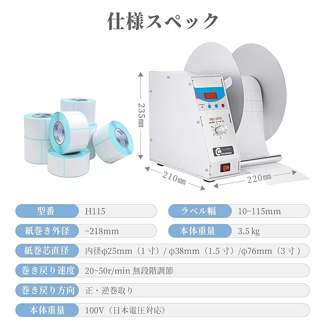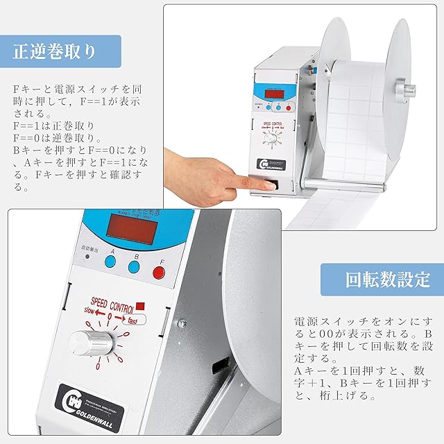 CGOLDENWALL ラベル巻取機全自動 ラベルリワインダー 速度調整可能 幅~115㎜ラベル対応 表/裏巻き両用 タグ巻き取り バーコード巻き戻し ラベル引き器 物流・倉庫・デパート・スーパー・服装産業に適用