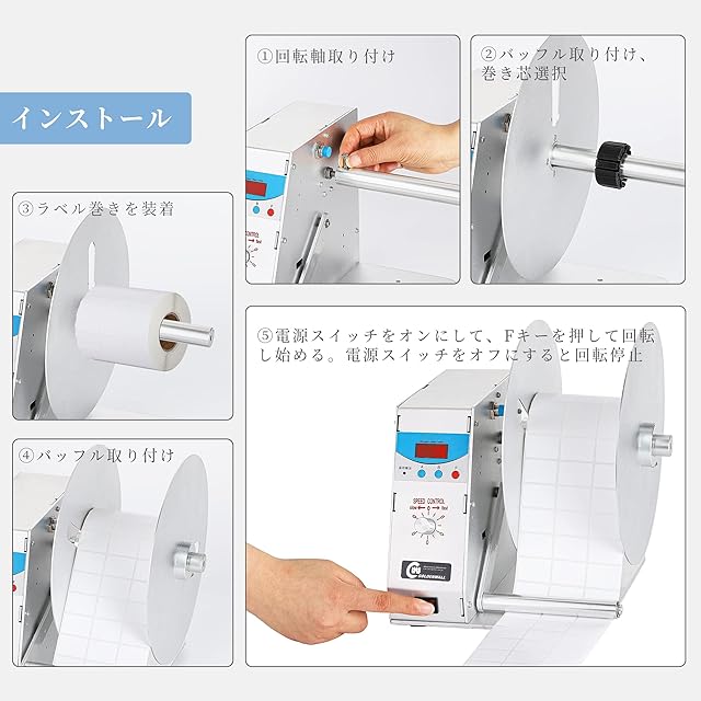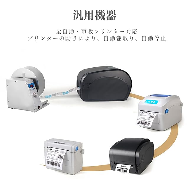 【プリンターと同時回転】プリンターの動きに従って、自動的に巻取り・停止・速度調節、全自動で人件費削減、作業効率UPでき!汎用性の高い設計で、プリンタ種類に拘らず、あらゆるラベルプリンタにベストマッチになれます。