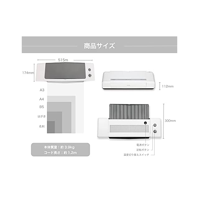 A4紙加工時間:39/33秒(50/60Hz)