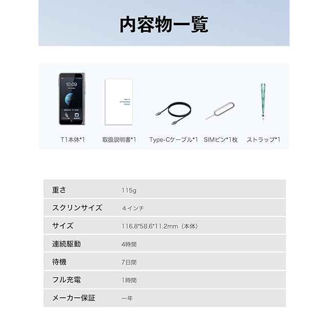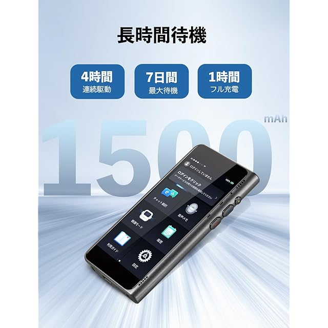 実用的な旅行ツール:世界時計があり、いつでも現地の時刻を確認できます。世界の為替レートをリアルタイムで更新するため、海外での消費情報が一目瞭然。また、音声をテキストに変換したり、個人メモを自動作成できます。4インチの大型ディスプレイに高解像度540x1080P採用で、画面の文字が断然見やすくなりました。2:1黄金比&115g超軽量ボディで、携帯便利。
