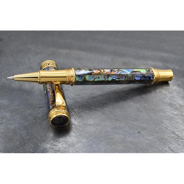 クリアラッカーがペンを保護し、輝きを与えます。天然の貝殻には様々なバリエーションがあり、この手作りペンの美しさとユニークさをさらに高めています。色はフォレストグリーンからブラックまであり、レッドやブルーのニュアンスもあります。