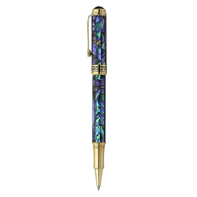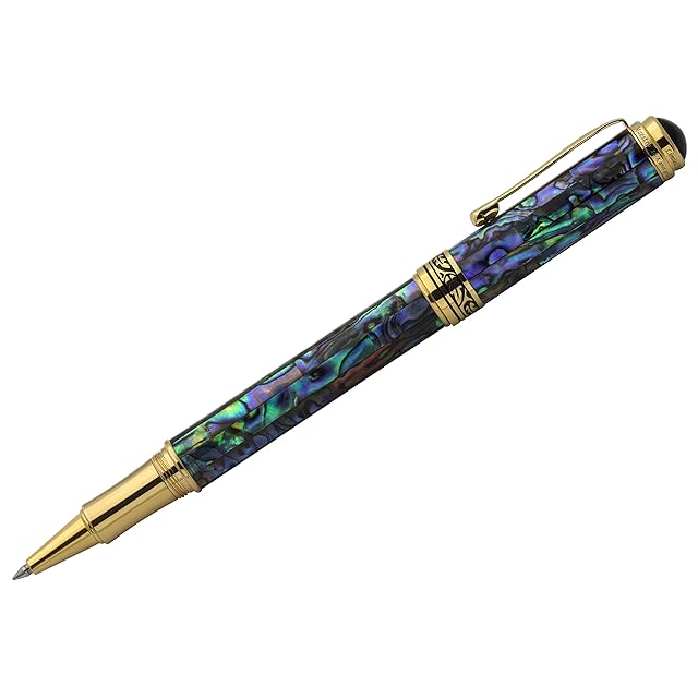 Xezo Maestro 細字 ローラーボールペン 玉虫色 パウア 貝殻 18カラットゴールドメッキ.ハンドメイド 限定版 シリアル化 2つなし