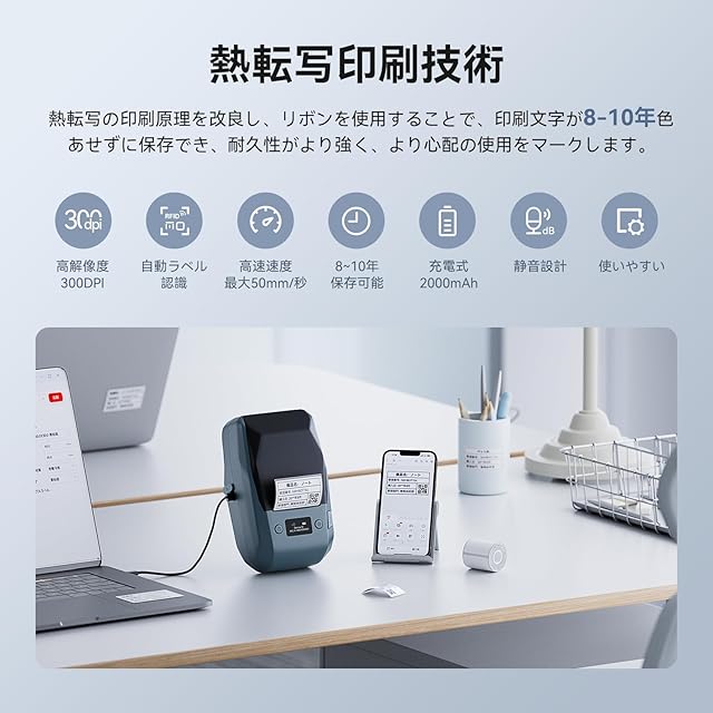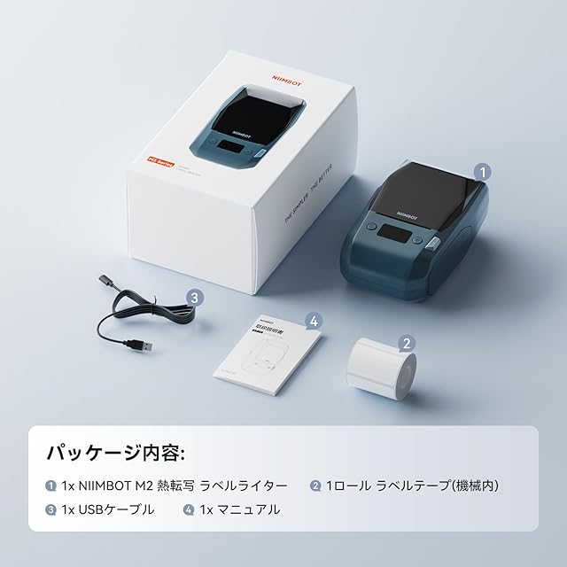 NIIMBOT M2 ラベルライター 熱転写 ラベルプリンター スマホ/タブレット対応 Bluetooth接続 ラベルメーカー シールプリンター 300DPI 高精細印刷 自動ラベル認識 リボン分離設計 使いやすい Type-c充電 手帳/資料分類/日付/宛名 家庭用/オフィス用/勉強用 20~50mm幅の対応テープ 日本語取扱説明書付き ブルー