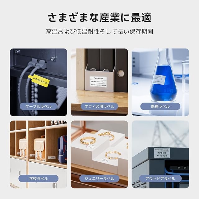 【様々な場合に適用】このラベルメーカーは、家庭用品の整理、食品の冷蔵、化粧品の分類、価格名、宝石タグ、ケーブルラベル、瓶のステッカー、屋外の鉢植え、学校やオフィスのファイル分類、保管、マーキングなどに広く使用されています。(ご注意:初回使用時は日本国内にいる必要があります。)