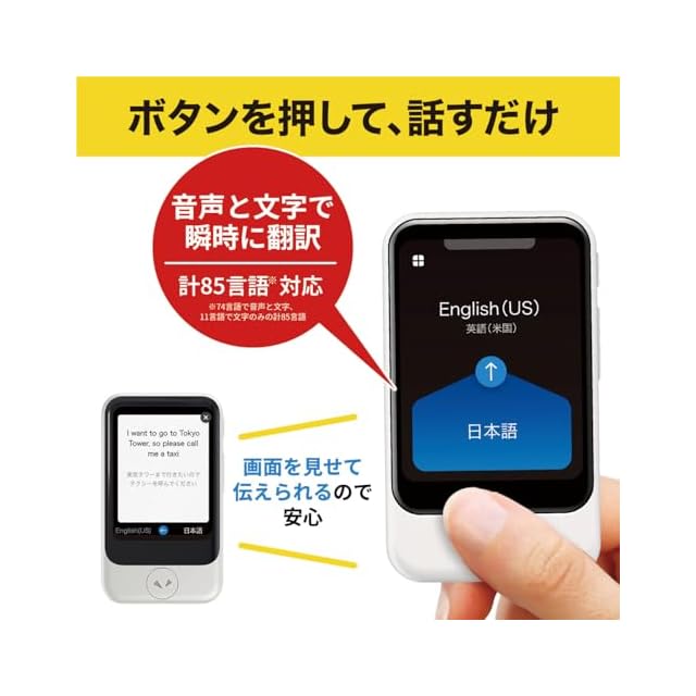 【簡単な音声翻訳】ボタンを押しながら話すだけで一瞬で通訳。撮影した文字を翻訳できるカメラ翻訳機能付き。