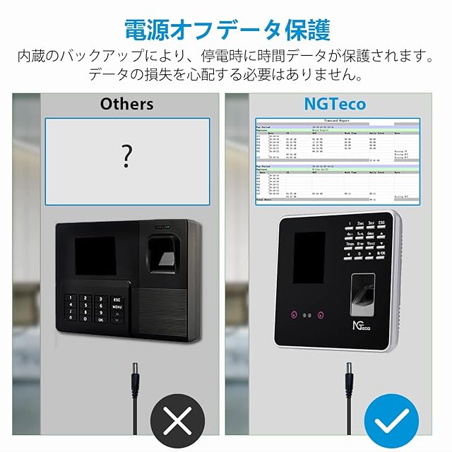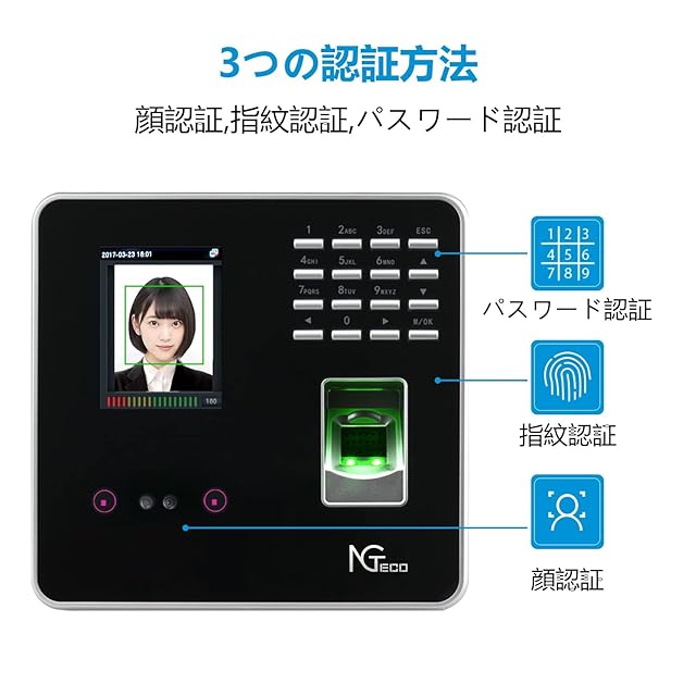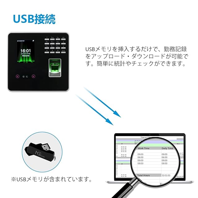NGTeco タイムレコーダー 顔認証 指紋認証 自動集計 USBメモリ付属 非接触タッチフリー 環境保護 コスト削減 オフィスに馴染むデザイン MB20