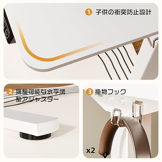 「昇降機能」 この電動昇降デスクは、先進の昇降システムを搭載しており、簡単なボタン操作でデスクの高さを調節することができます。スタンディングデスクとして使用したり、昇降式のゲーミングデスクとして利用したりすることができます。ワンタッチで切り替えられるので、快適で自由な作業体験を提供します。上下昇降範囲71-118CM。