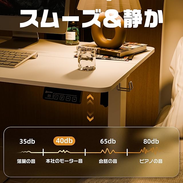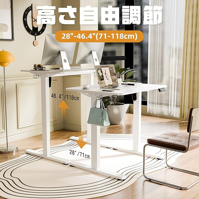 「安定性と耐久性」 このスタンディングデスクは、安定性と耐久性を確保するために、先進的な技術と高品質な素材を使用しています。家庭やオフィスで長時間使用しても、優れたパフォーマンスを維持します。