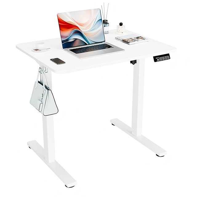 ERGOMAKER 昇降デスク 幅80×奥行60CM 電動式昇降デスク スタンディングデスク 電動 オフィスワークテーブル 上下昇降デスク パソコンデスク ゲーミングデスク 昇降テーブル 高さ調節 掛けフック付く 静音 メモリ機能 組立簡単 (足(白)+天板(白), 80*60)