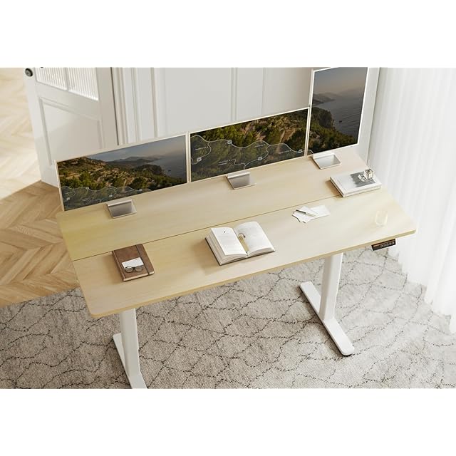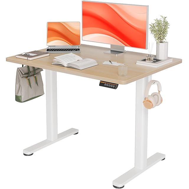 Claiks 昇降デスク 初心者向け スタンディングデスク 電動 パソコンデスク 昇降式 オフィスデスク 幅100cm*奥行き60cm ホワイトフレーム/ナチュラル天板