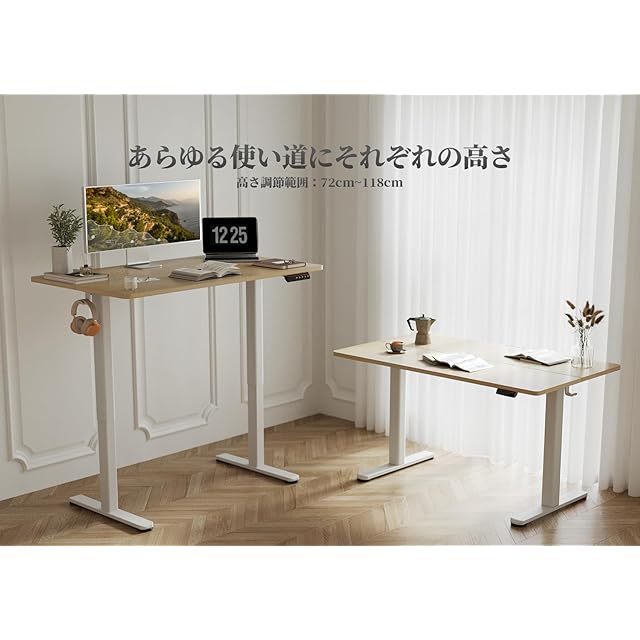【高さ調節可能】昇降範囲:72〜118cm、昇降速度:20mm/s。ゲーミングデスク、オフィスデスク、勉強机など、使い方に合わせて高さを自由に調整することができます。また、よく使う高さを3つまで記憶することができますので、お気に入りの高さにワンタッチで戻ることができます。