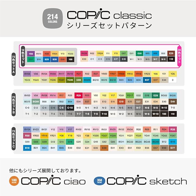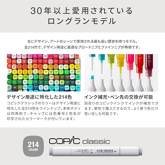 【コピックのロングランモデル】主にデザイン、アートのシーンで使用される、コピックで最も長い歴史を持つモデルのイラストマーカー