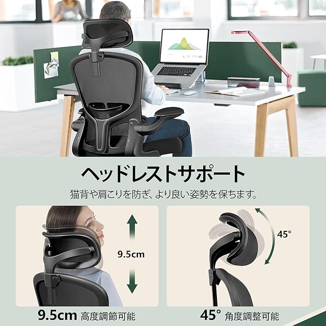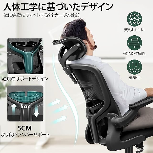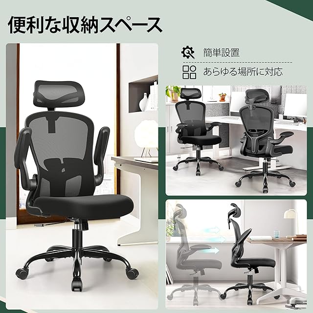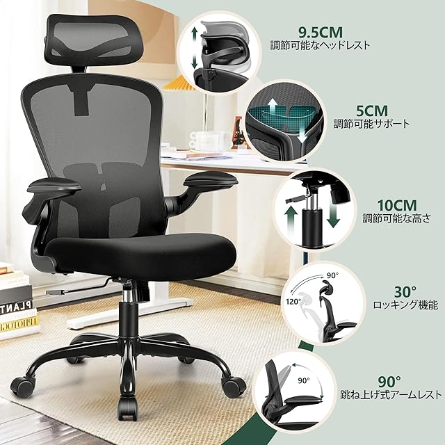 FelixKing オフィスチェア 人間工学 疲れない デスクチェア メッシュ 昇降機能付き 跳ね上げ式アームレスト 椅子 可動肘 腰痛対策 多機能 チェア 通気性 事務用 在宅勤務 360度回転 静音PUキャスター おしゃれ ブラック