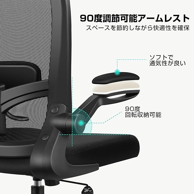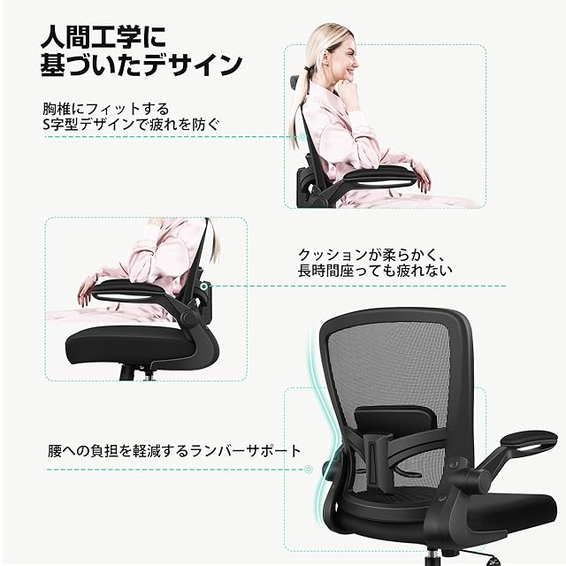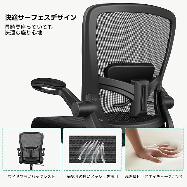 FelixKing オフィスチェア 疲れない 事務用 在宅勤務 デスクチェア メッシュ 人間工学 昇降機能付き 跳ね上げ式アームレスト 腰サポート 360度回転 多機能 通気性 ブラック