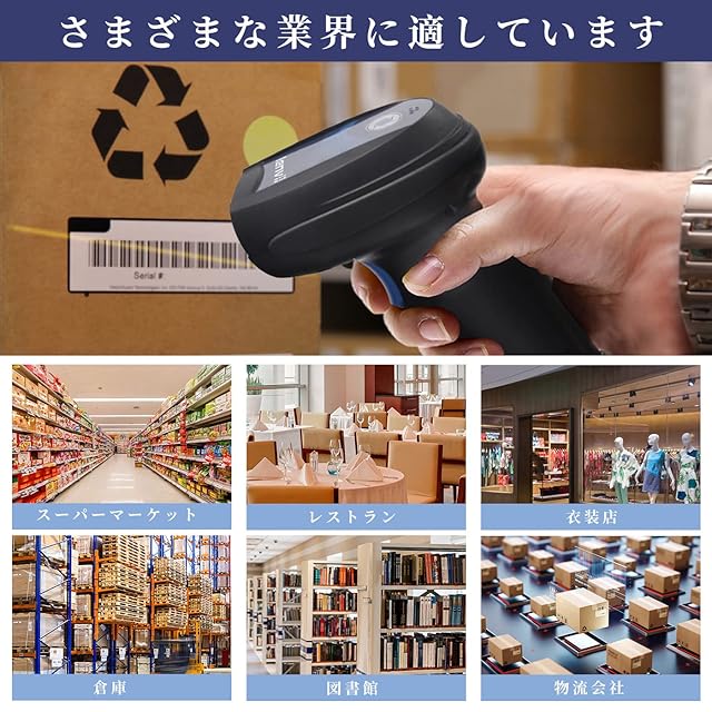 【幅広い用途】QRコードスキャナは、スーパーマーケット、倉庫、物流、図書館、レストラン、小売店、銀行、郵便サービス、工業・製造工程管理など幅広い用途に適しています。その汎用性により、様々なビジネス環境において理想的な選択肢となります。