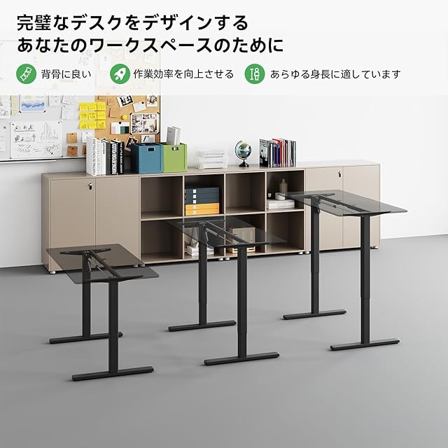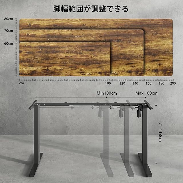 電動昇降デスク 昇降式デスク 脚のみ 高さ調整70cm~118cm スタンディングデスク ゲーミングデスク メモリ機能/フック/ロック可能なキャスター サイレントモーター (シングルモーター, ブラック)