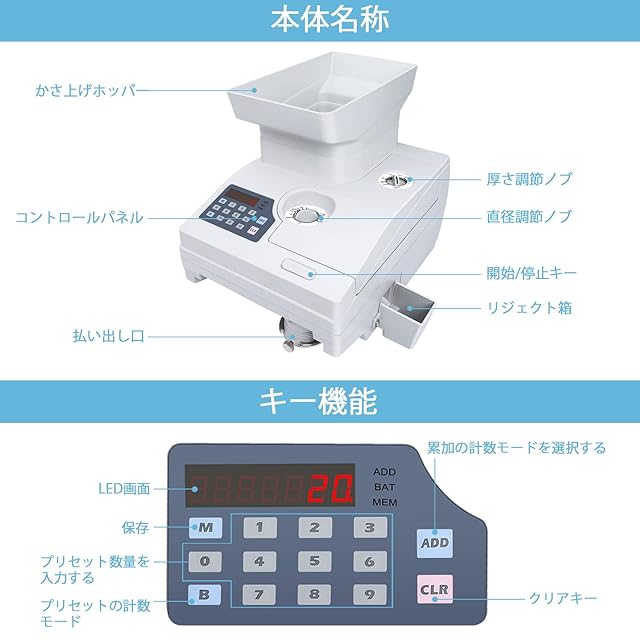 ユーザーフレンドリーなキーパネルと簡単なメンテナンス:キーパネルは、バッチ、累積カウントモードでの顧客操作が非常に簡単です。 フロントパネルを完全に開いて、詰まったコインを取り除き、マシンを掃除することができます。【購入日から2年間の品質保証】:疑問がある場合は、お問い合わせください.